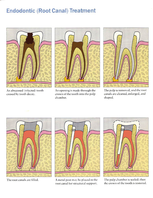 at a time, removing the pulp, nerve tissue, and bacteria. If tooth decay is